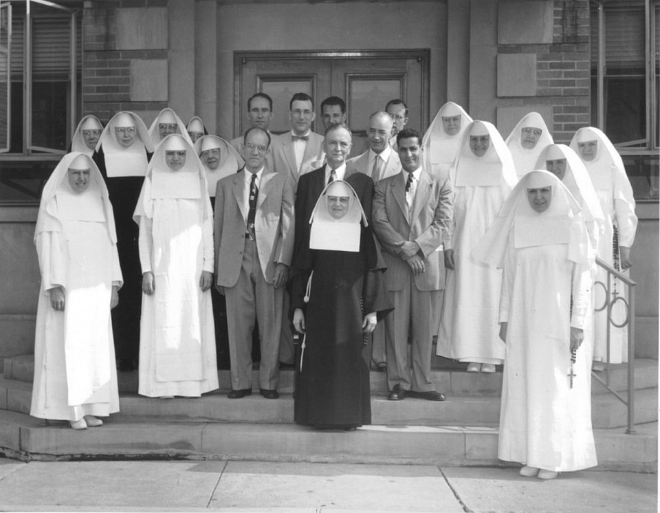 Christ the King School was about a mile walk for home with no buses at that time. Packing lunches for seven every morning was not an easy task. A little soft selling by Charlie and Father Mooney arranged with the Sisters to invite the Finnigans to join them for lunch in their private dining room. If anyone would rather join their friends in the cafiteria, no problem just pack your own lunch. The Sisters arranged other ways to bring healing. Each day one of the Finnnigan boys ran down the hall ringing the dismissal bell and as the children marched single file down the hall Kathleen cranked the victrola playing John Phillip Souza records. Father Mooney sat in his stateroom overlooking the playground where he could watch the children play and take corrective action when necessary. All the Finnigan boys would serve as alter boys at Sunday mass. Father gave Paul a weekend job polishing the alter and church floors as a last attempt to bring one of the Finnigan boys to the priesthood. Father was not successful.